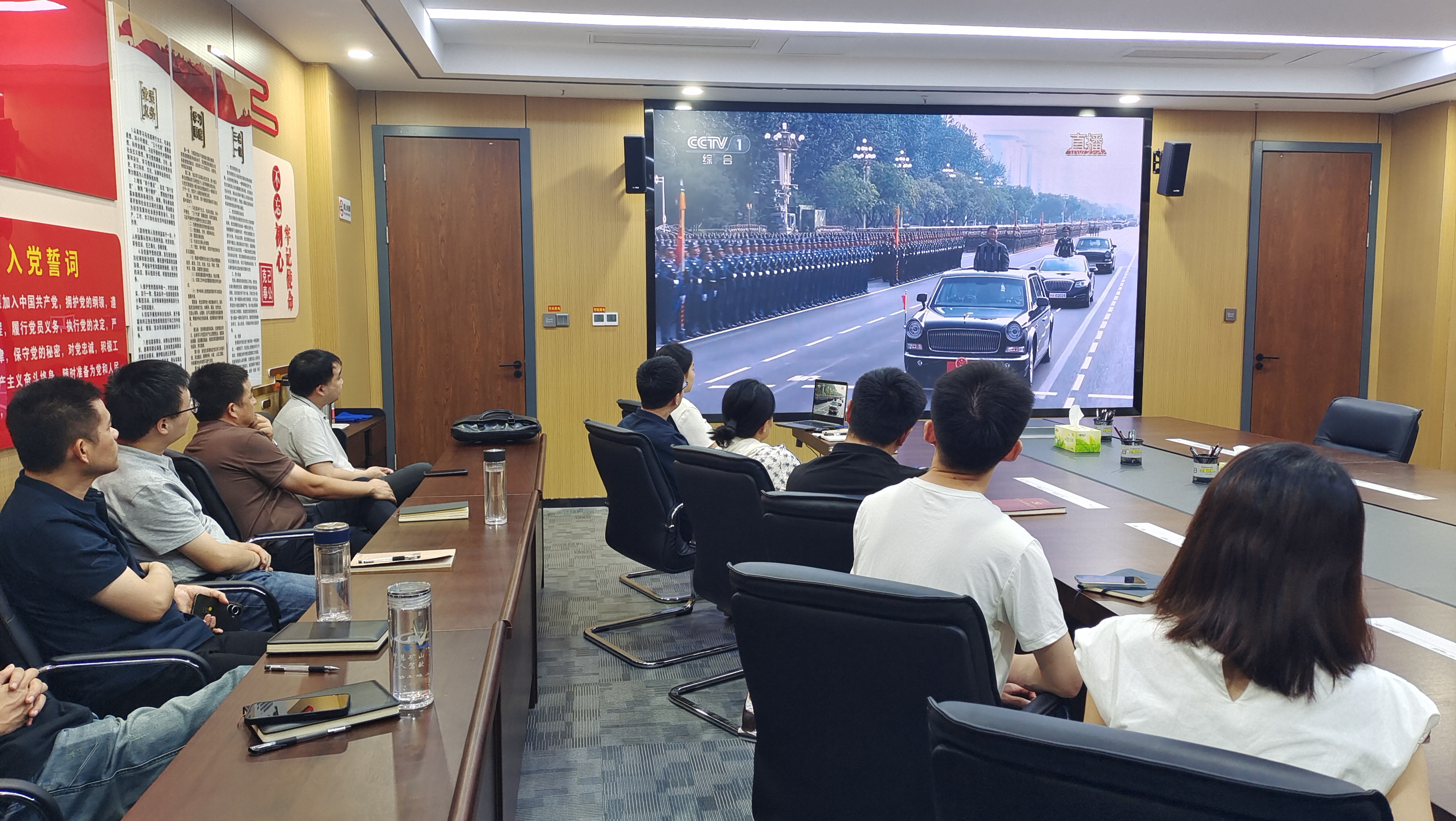 當天,各子公司結合礦山生產(chǎn)實際設置觀看點,確保一線礦工、技術人員及后勤保障人員都能準時觀看。上午9時整,紀念大會正式開始。直播畫面中,天安門廣場莊嚴壯麗,長安街盛裝以待,大家全神貫注觀看閱兵盛況,認真聆聽習近平總書記重要講話,共同感受大國崛起的磅礴力量。當看到受閱方隊邁著鏗鏘步伐通過天安門、先進裝備列陣亮相時,大家更是心潮澎湃,為祖國的強大和人民軍隊的威武雄壯而感到無比自豪。