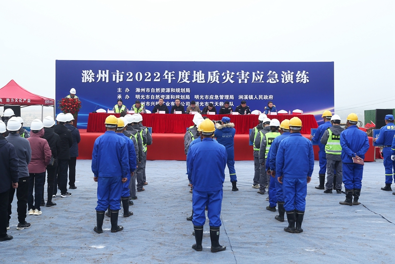 為進(jìn)一步做好地質(zhì)災(zāi)害防治工作,提高廣大人民群眾對(duì)突發(fā)地質(zhì)災(zāi)害的應(yīng)急反應(yīng)能力,強(qiáng)化防災(zāi)避災(zāi)意識(shí)。11月18日上午,滁州市2022年度地質(zhì)災(zāi)害應(yīng)急演練在滁州市興明礦業(yè)巢東礦區(qū)舉行,滁州市自然資源和規(guī)劃局地質(zhì)礦產(chǎn)管理科科長孫忠民、生態(tài)修復(fù)科科長朱慶濤,明光市應(yīng)急管理局局長王大虎,明光市自然資源和規(guī)劃局副局長張宗建,澗溪鎮(zhèn)人民政府副鎮(zhèn)長孟慶德參加,滁州市各縣區(qū)自然資源和規(guī)劃部門礦政、生態(tài)修復(fù)管理人員45人應(yīng)邀到場(chǎng)觀摩。
