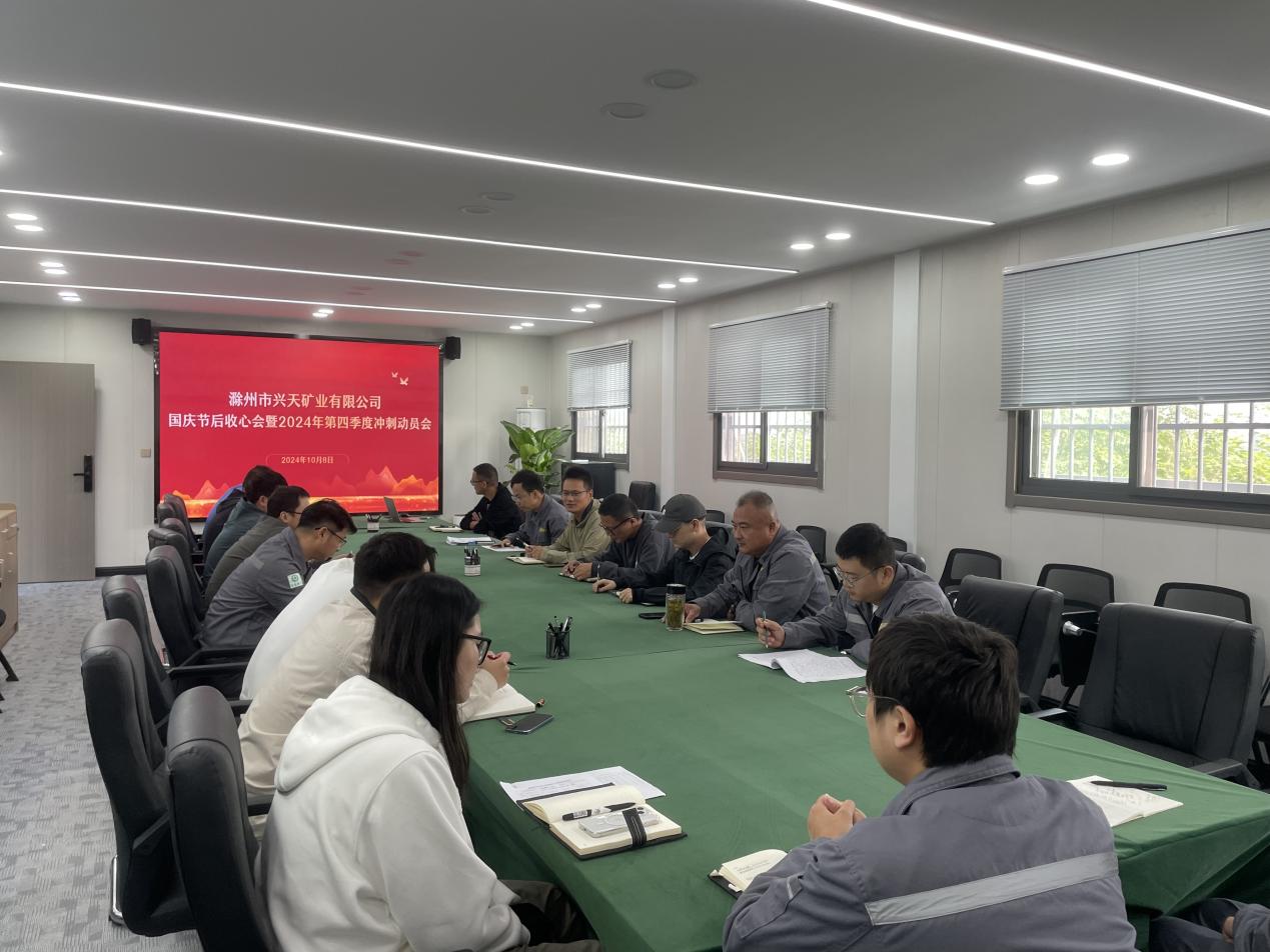 10月8日上午,興天礦業(yè)組織開展國慶節(jié)后收心會暨2024年第四季度沖刺動員會。公司全體職工及實業(yè)公司、工程公司駐項目部代表參會。